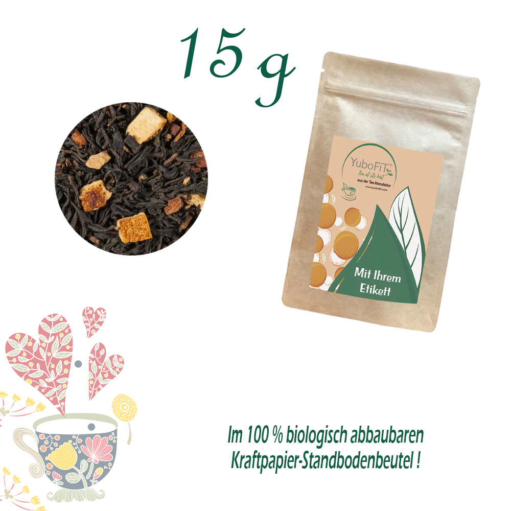 Schwarzer Tee (67 %), Orangenschalen, Ingwer, Zimt, Kardamomsaat, Aromen, Vanillestücke