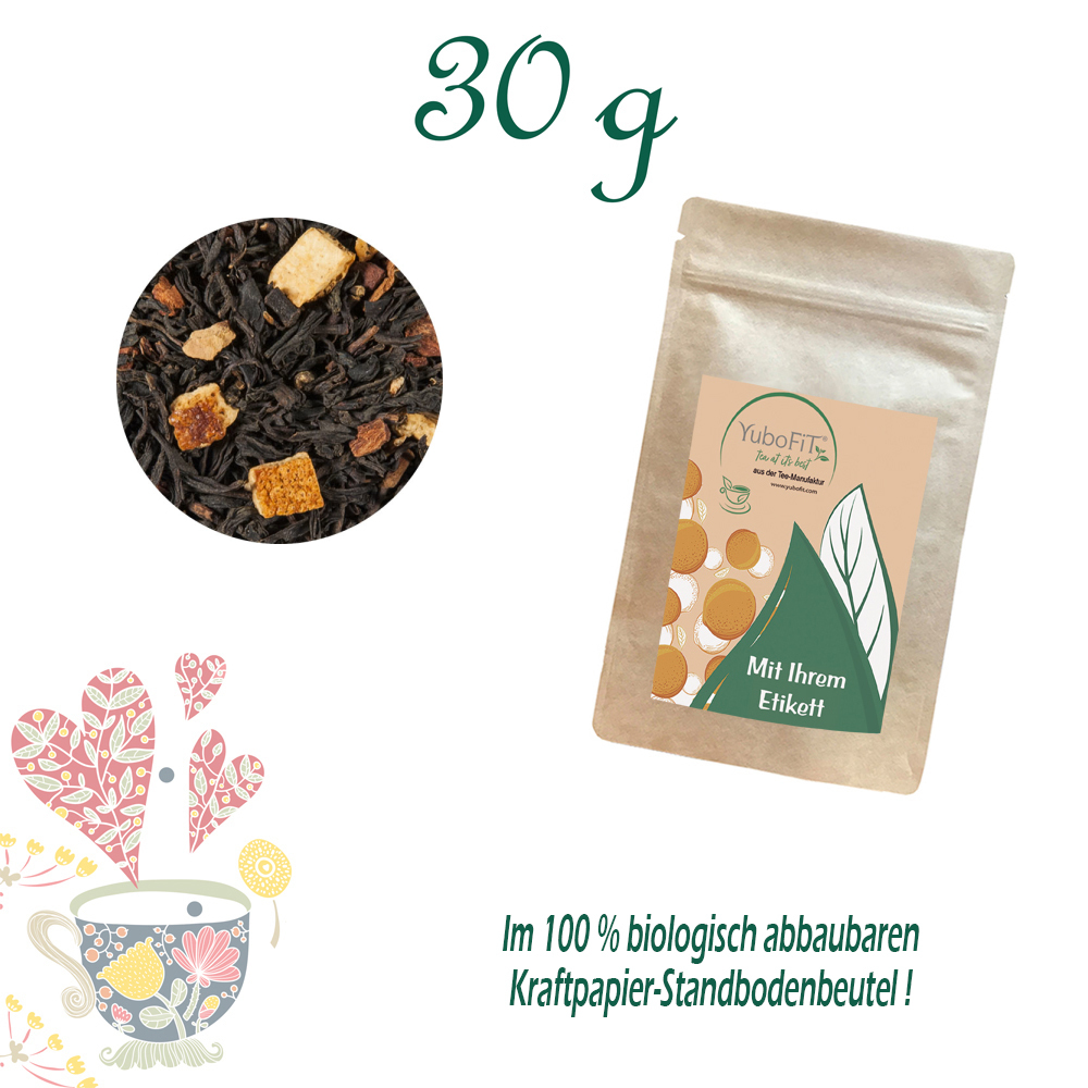 Schwarzer Tee (67 %), Orangenschalen, Ingwer, Zimt, Kardamomsaat, Aromen, Vanillestücke