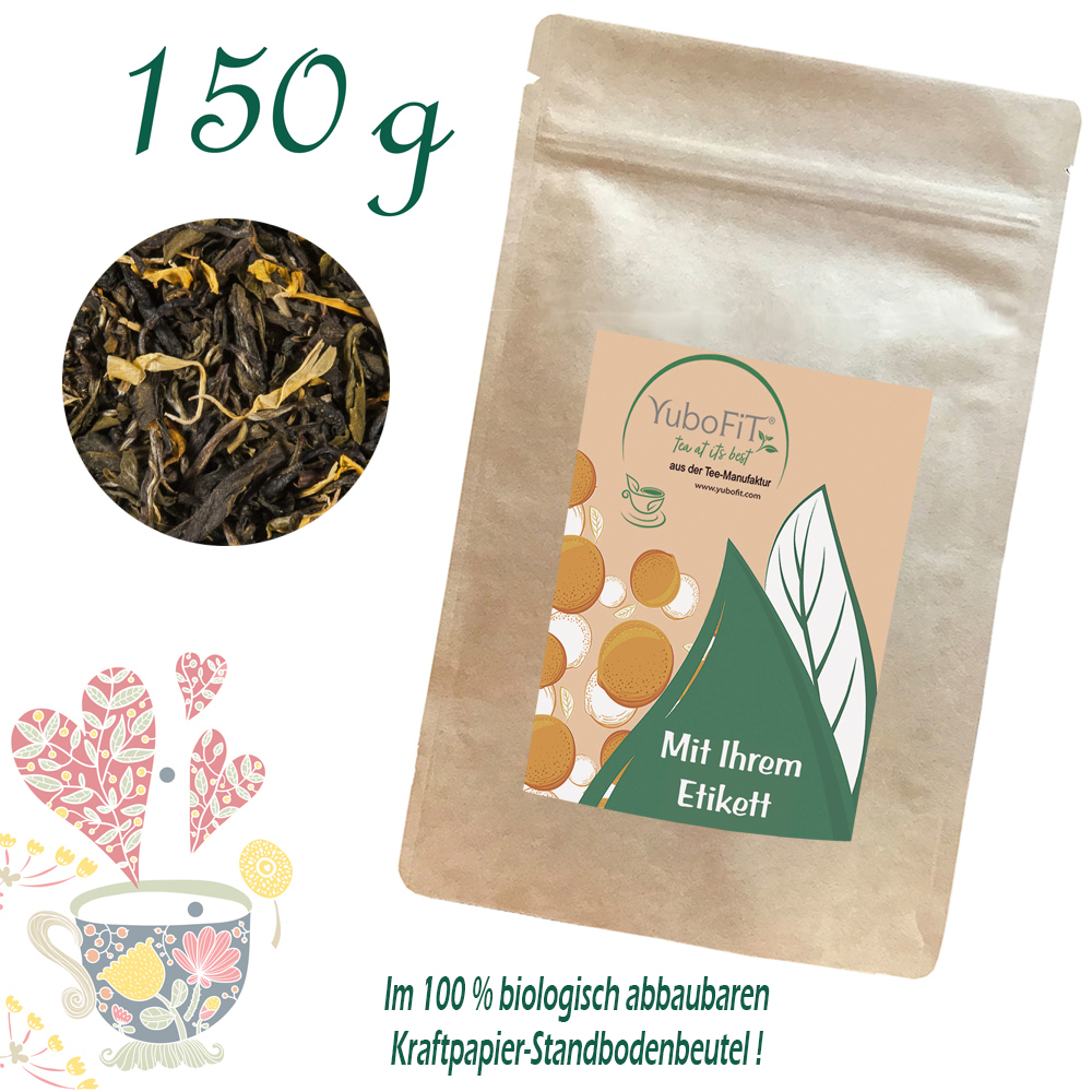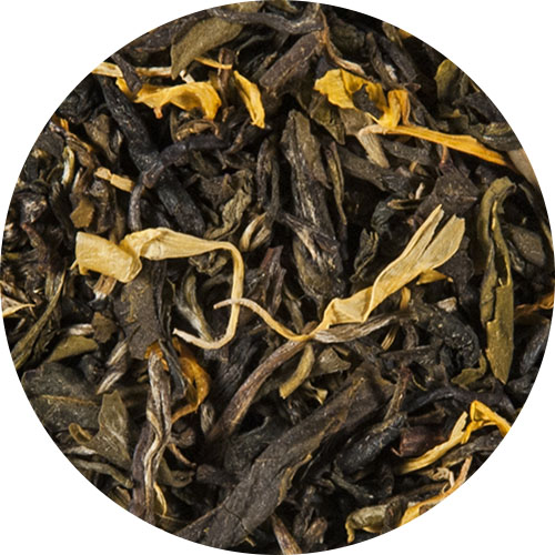 Weißer Tee (45 %), Grüner Tee Yin Hao (30 %), Grüner Tee Lychee (Grüner Tee, Aroma) (20 %), Aromen, Ringelblumenblüten