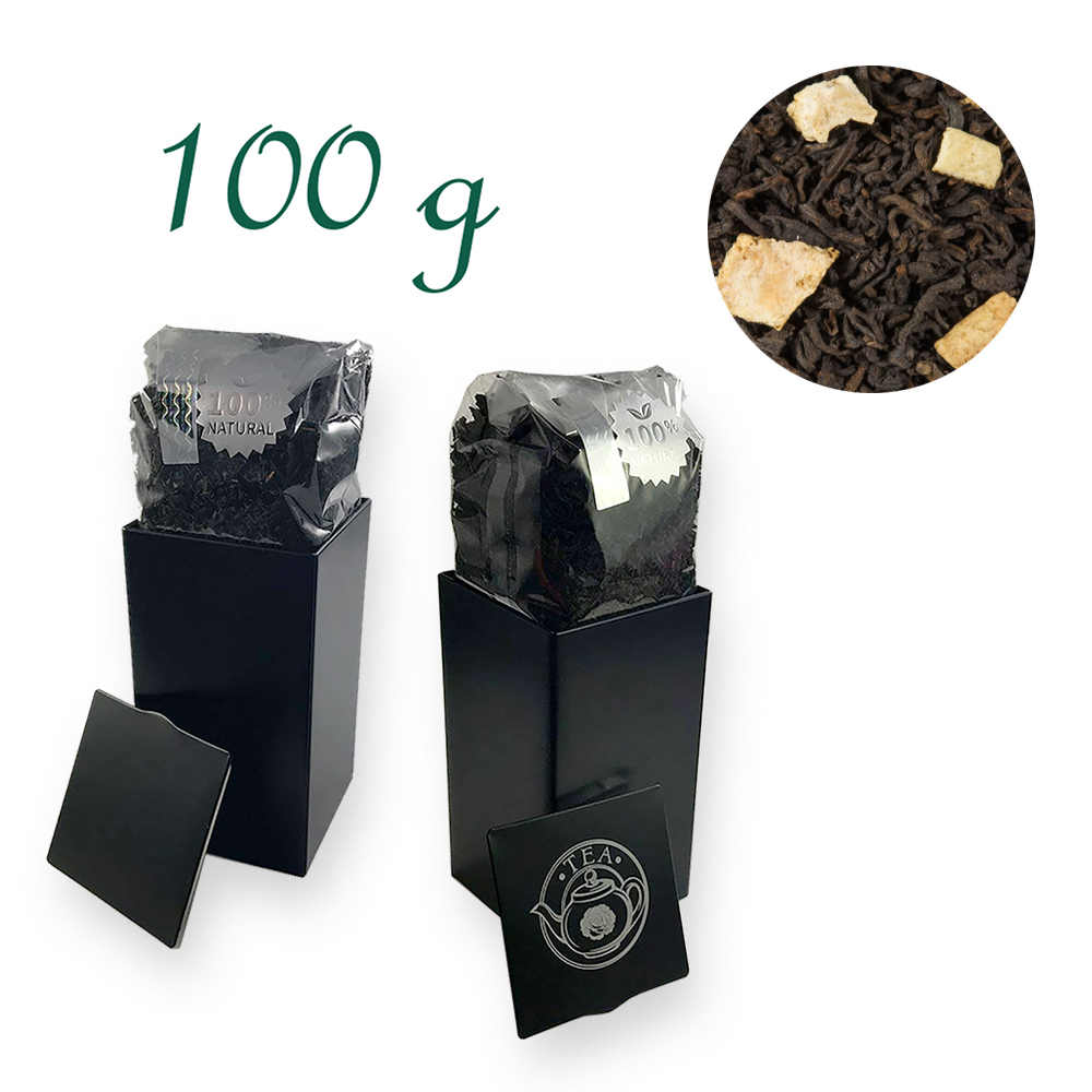 Ein Treffen von Himmel und Erde: Der dunkle, erdige Pu Erh trifft auf den Geschmack fruchtig-zitroniger Orange.