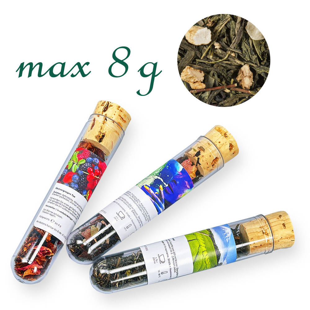 Diese Mischung überzeugt als kraftvolle Fusion mit würzigem Ingwer, Ginsengwurzel und verschiedenen fruchtigen Geschmackskomponenten.