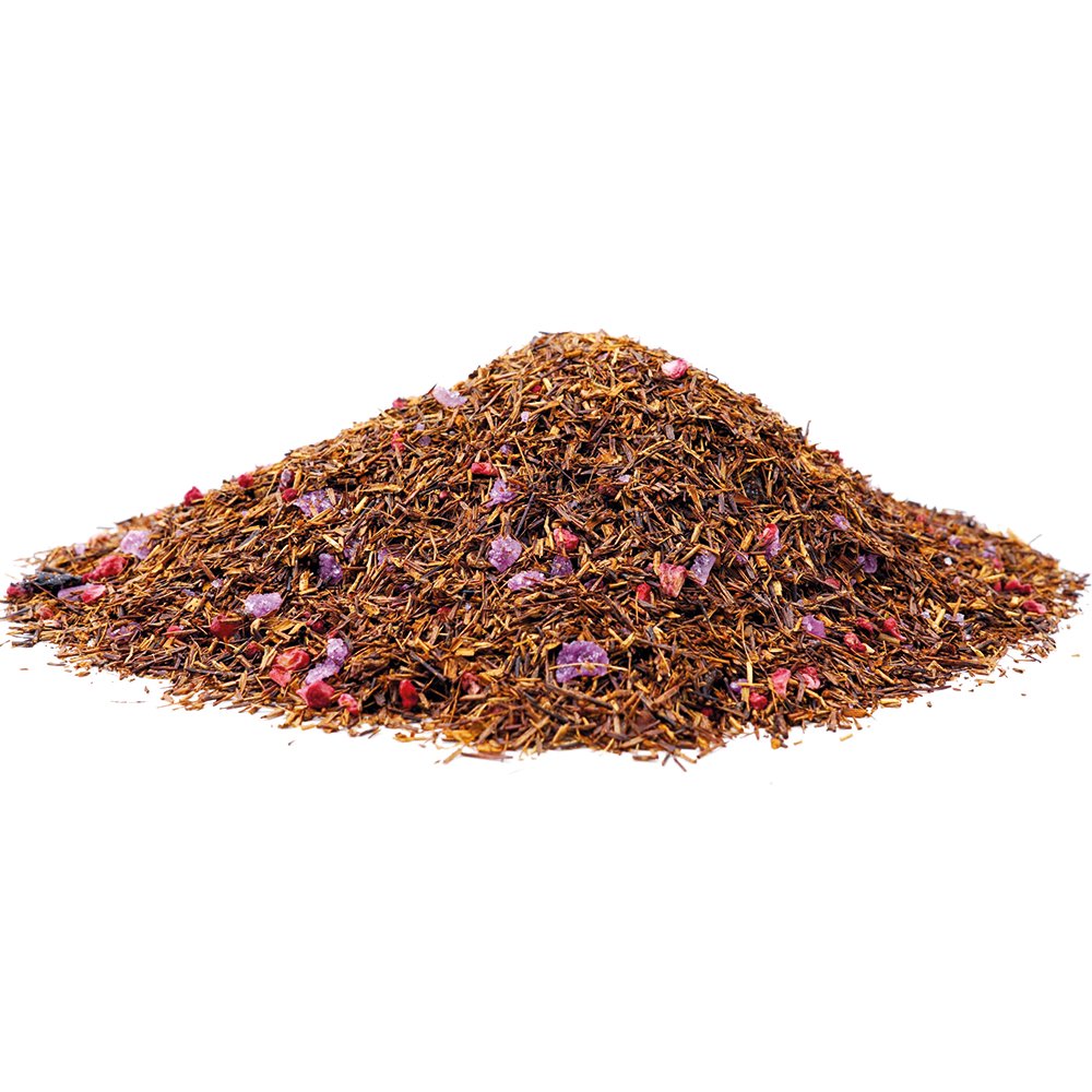 Rotbuschtee (86%), Korinthen, Aroma, Himbeerstücke, natürliches Orangen-Aroma, Malvenblüten.