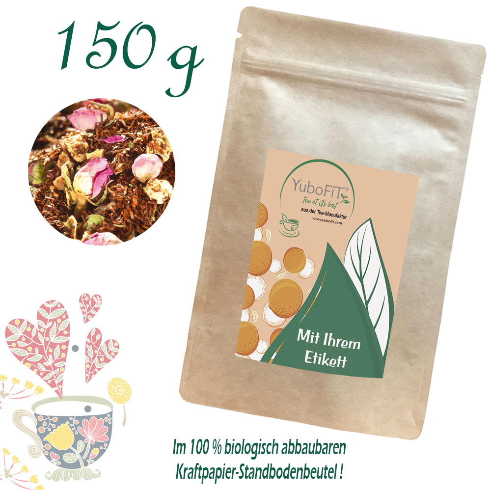 Rotbuschtee (83%), Rosenknospen, Feigenstücke, Aroma, Kiwistücke, Brombeerblätter.