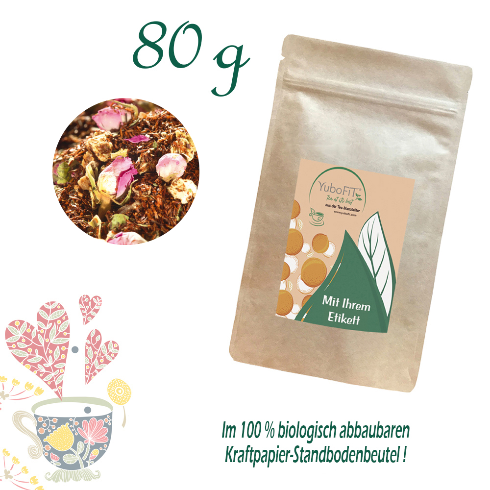 Rotbuschtee (83%), Rosenknospen, Feigenstücke, Aroma, Kiwistücke, Brombeerblätter.