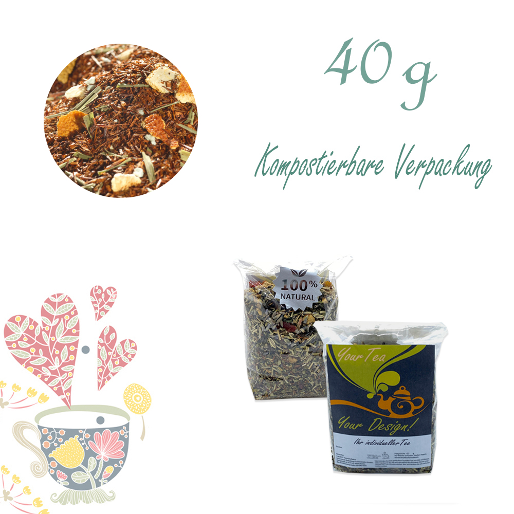 Rotbuschtee (90%), Zitronengranulat (Glukosesirup, Zitronensaftkonzentrat, gezuckerte Aprikosen, modifizierte Stärke, Verdickungsmittel: Natriumalginat, natürliches Aroma), Orangenschalen (3%), natürliches Limetten-Aroma, Zitronengras.