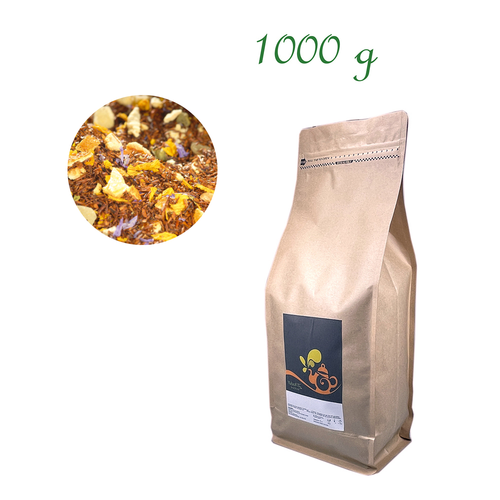 Rotbuschtee (80%), Ananasstücke (Ananas, Zucker, Säuerungsmittel: Zitronensäure), Aroma, Orangenschalen, Papayastücke (Papaya, Zucker), Mangostücke (2%) (Mango, Zucker, Säuerungsmittel: Zitronensäure), Sonnenblumenblüten, Malvenblüten.