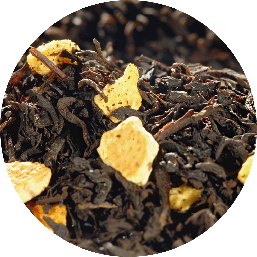 Schwarzer Tee (93%), natürliches Orangen-Aroma, Orangenschalen (1%), Zitronenschalen (1%), Orangengranulat (1%) (Orangensaftkonzentrat, Orangenzellen), Zitronengranulat (1%) (Glukosesirup, Zitronensaftkonzentrat, gezuckerte Aprikosen, modifizierte Stärke, Verdickungsmittel: Natriumalginat, natürliches Aroma), natürliches Aroma.
