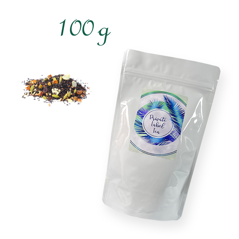 Schwarzer Tee (53%), Sultaninen, Zimtstücke (8%), HASELNUSSKROKANT (Zucker, HASELNÜSSE), Orangenschalen (6%), gelbe Sultaninen (Sultaninen, Konservierungsstoff: SCHWEFELDIOXID / SULFITE), MANDELSTÜCKE, Kardamom, Aroma.