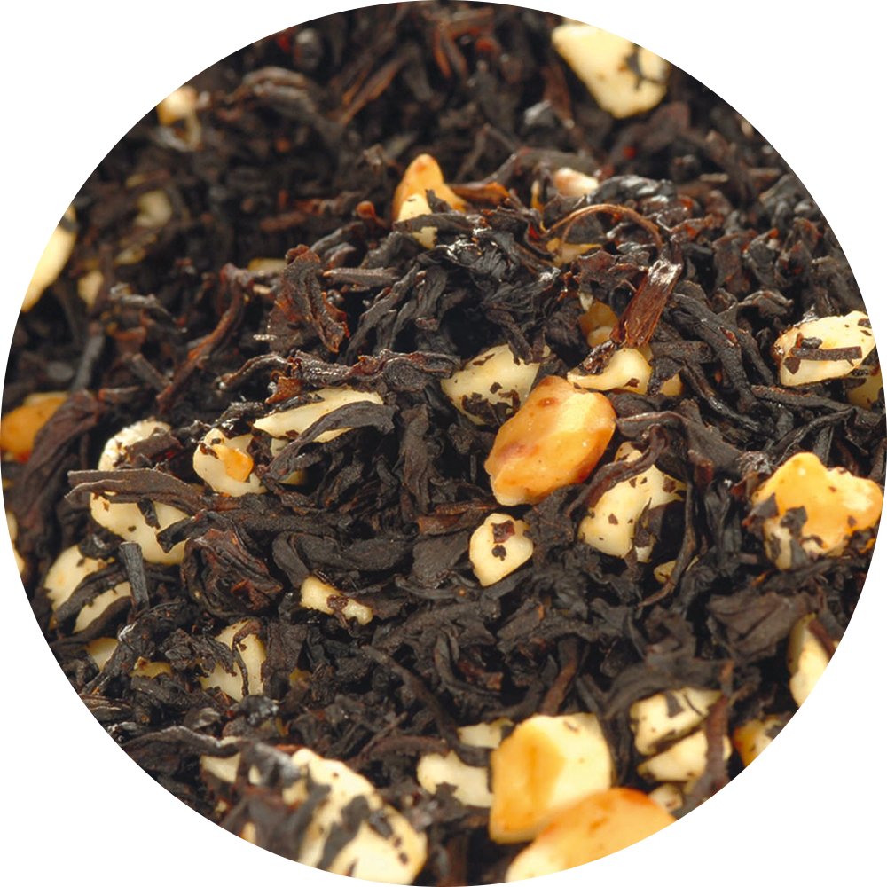 Schwarzer Tee (65%), Nougatstücke (30%) (Zucker, Glukosesirup, MANDELN, Kartoffelstärke, Honig, Kakaobutter, HÜHNEREIWEISS, natürliches Vanille-Aroma), Aroma.