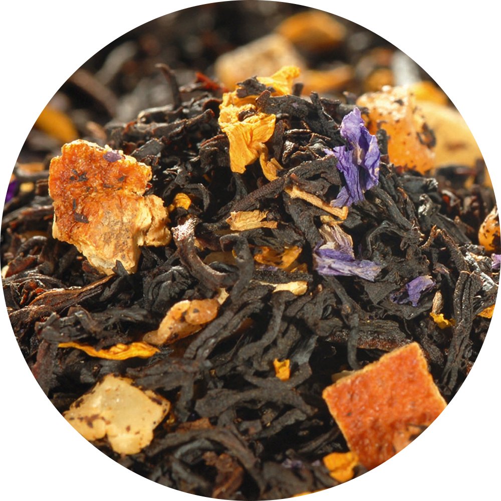 Schwarzer Tee (79%), Ananasstücke (Ananas, Zucker, Säuerungsmittel: Zitronensäure), Aroma, Orangenschalen, Papayastücke (Papaya, Zucker), Mangostücke (2%) (Mango, Zucker, Säuerungsmittel: Zitronensäure), Sonnenblumenblüten, Malvenblüten.