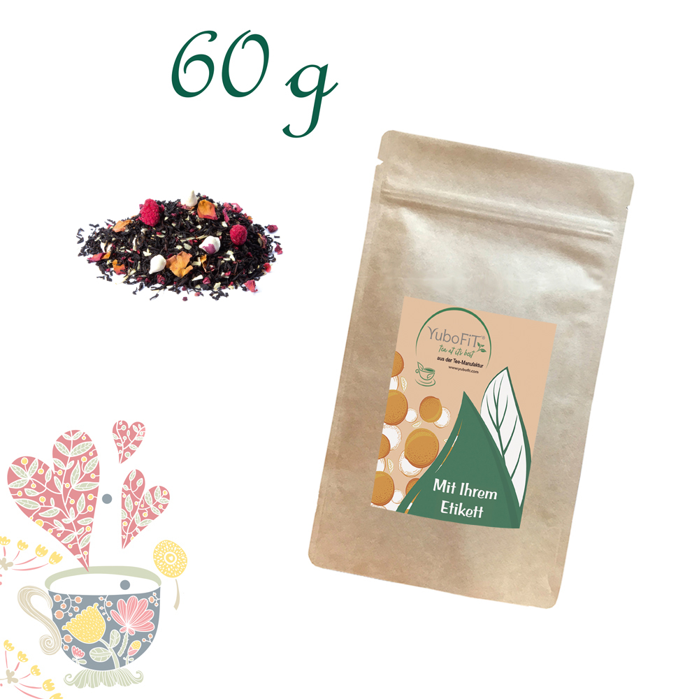 Schwarzer Tee (72%), Kokosnussflocken, Aroma, Baiserhütchen (Zucker, HÜHNEREIWEISSPULVER), Himbeerstücke (2%), Himbeeren (2%), Rosenblütenblätter.