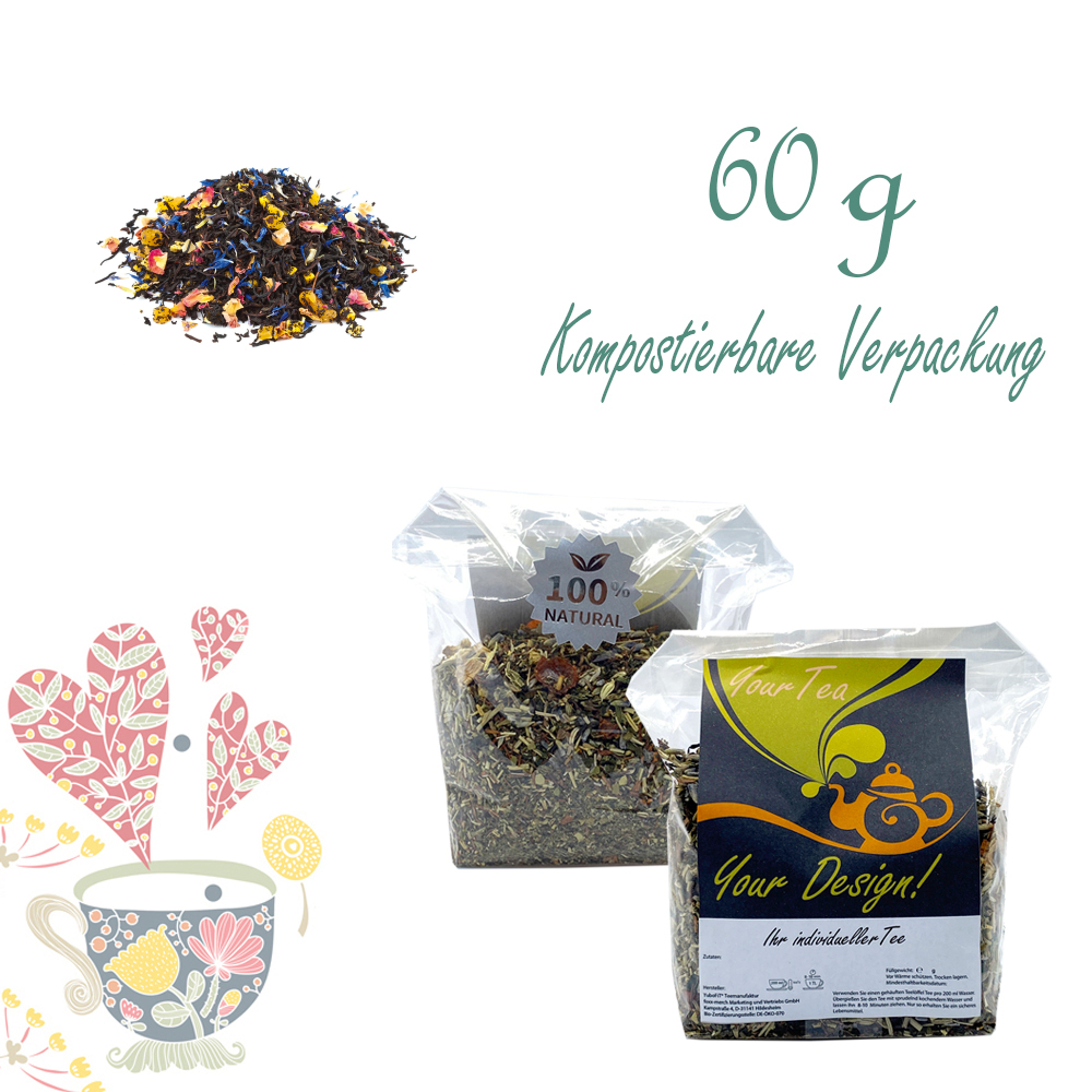 Kompostierbarer Zellglas-Beutel, Geprägtes Verschluss-Siegel aus Zuckerrohrpapier. Komplett abbaubar. Inhalt 60 g, Material: Zellglas