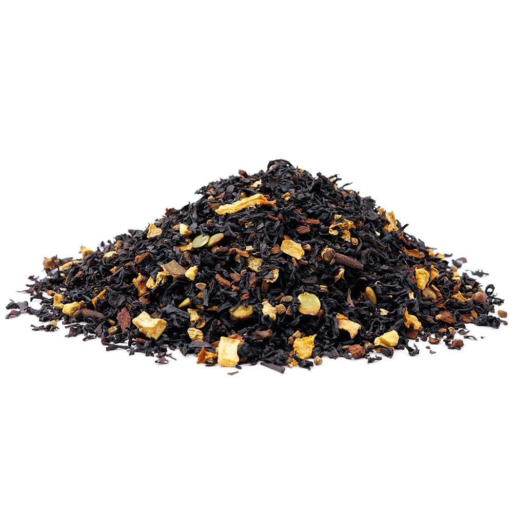 Schwarzer Tee (46%), Zimtstücke, Ingwer, Kürbisstücke (6%), Kürbiskerne (6%), geröstete Zichorienwurzeln, Kardamom, Gewürznelken, natürliches Aroma, Aroma.