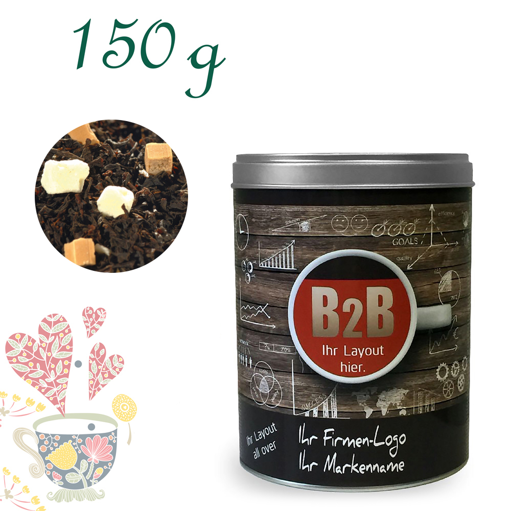 Schwarzer Tee (81%), Karamellstücke (7%) (MAGERKONDENSMILCH, Zucker, Glukosesirup, BUTTERFETT, Feuchthaltemittel: Sorbitsirup, Emulgator: Monound Diglyceride von Speisefettsäuren), Joghurtgranulat (7%) (Glukosesirup, MAGERMILCHJOGHURT, Zucker, modifizierte Stärke, Säuerungsmittel: Zitronensäure), Aroma.