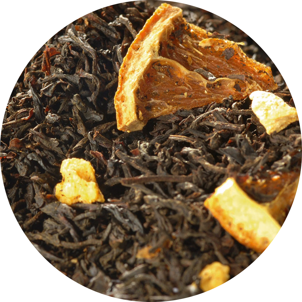 Schwarzer Tee (87%), Orangenecken (6%), Orangenschalen (3%), natürliches Orangen-Aroma, Orangengranulat (1%) (Orangensaftkonzentrat, Orangenzellen).