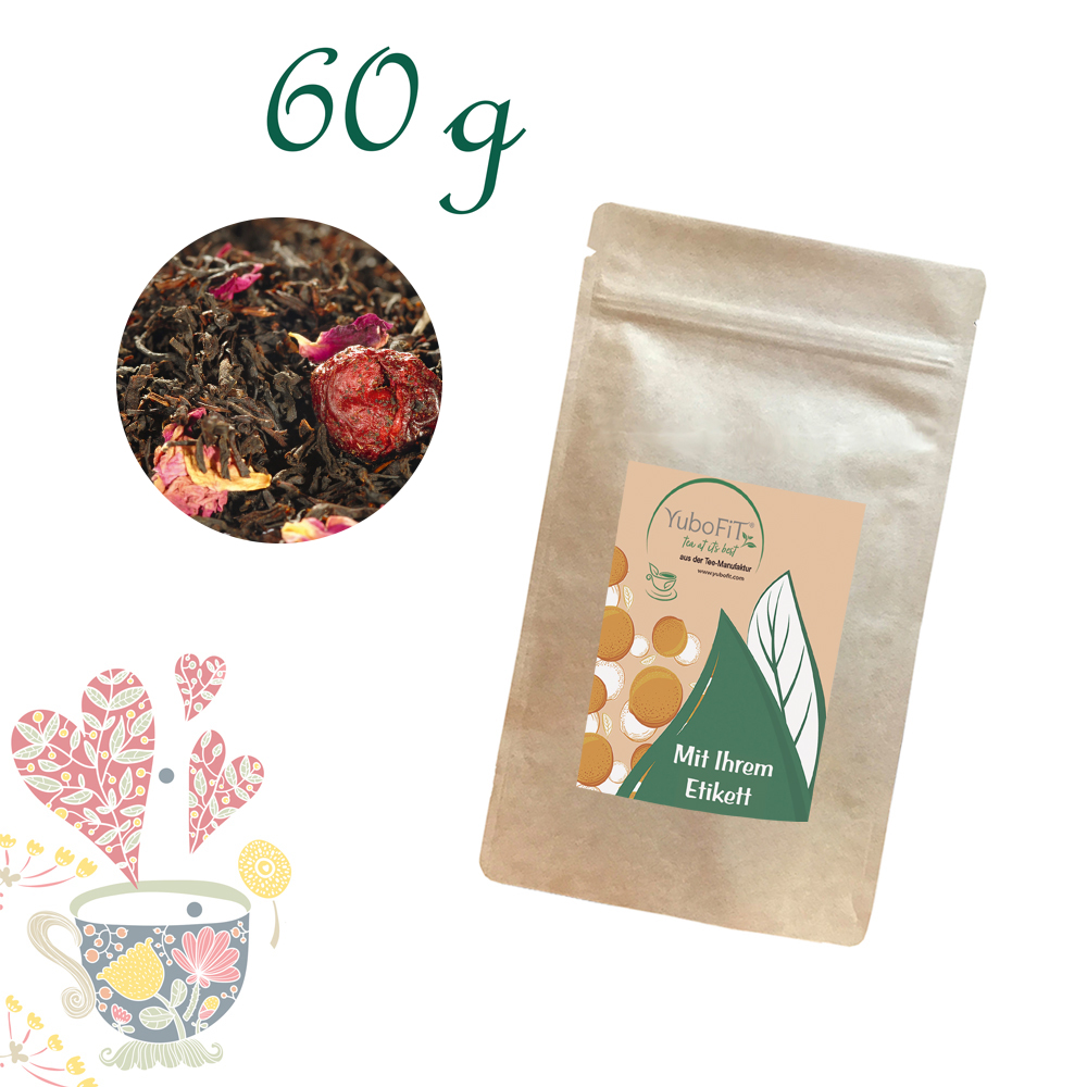 Schwarzer Tee, Aroma, Sauerkirschen (1%), Rosenblütenblätter.