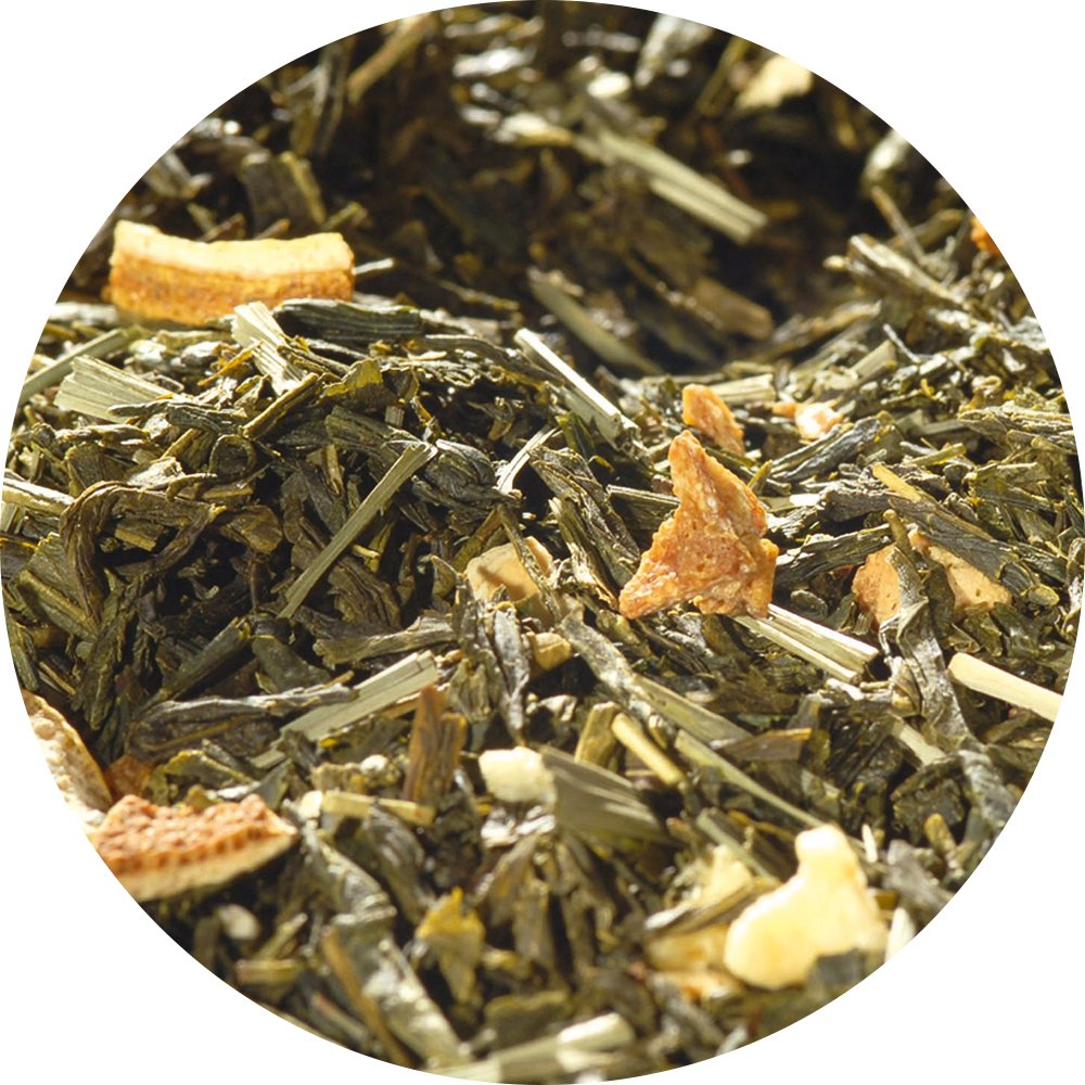 Grüner Tee (79%), Zitronenschalen (7%), Zitronenecken (5%), Zitronengras, Zitronengranulat (2%) (Glukosesirup, Zitronensaftkonzentrat, gezuckerte Aprikosen, modifizierte Stärke, Verdickungsmittel: Natriumalginat, natürliches Aroma), natürliches Aroma.