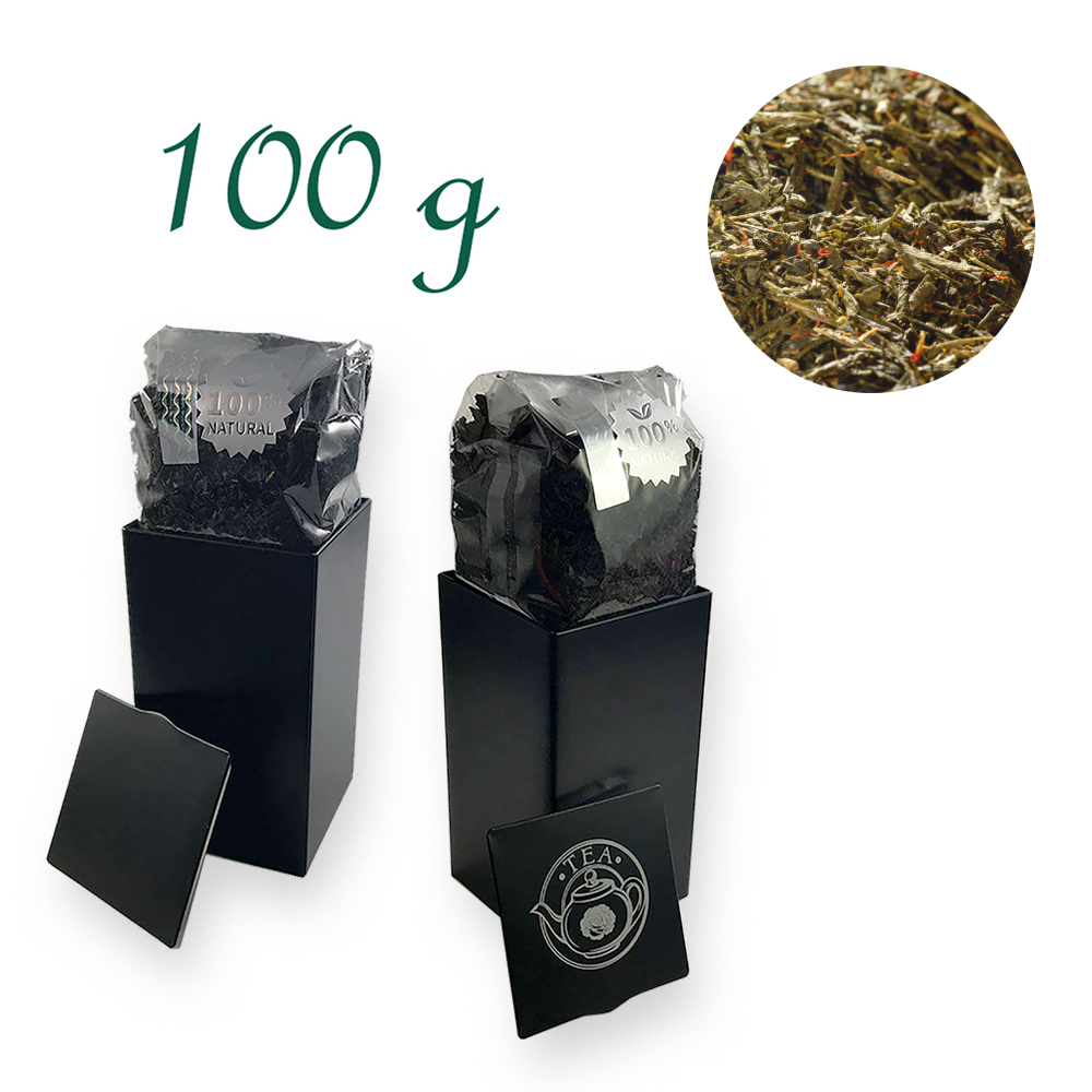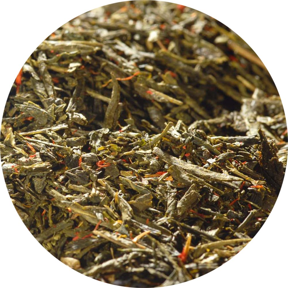 Grüner Tee, Saflorblüten, natürliches Orangen-Aroma, Ginsengpulver (0,5%).