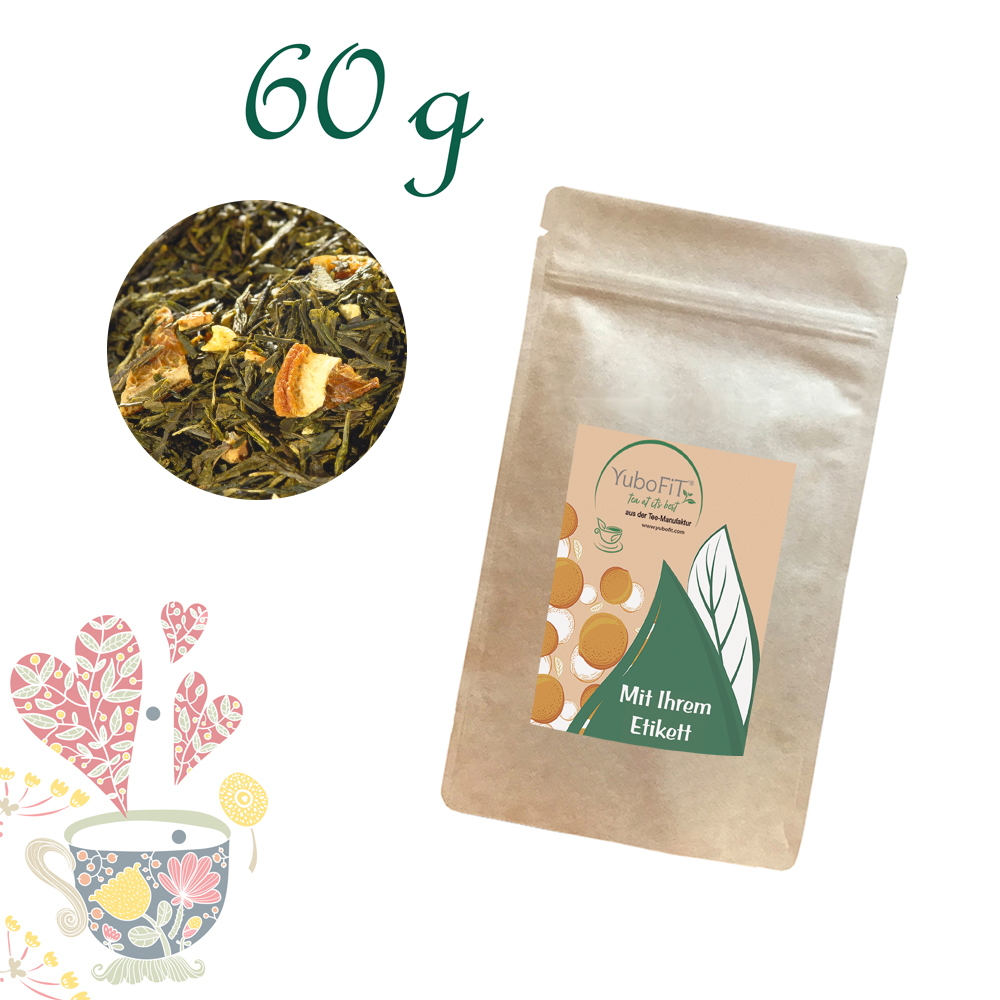 Grüner Tee (84%), Orangenecken (8%), natürliches Orangen-Aroma, Orangenschalen (2%), Orangengranulat (2%) (Orangensaftkonzentrat, Orangenzellen).