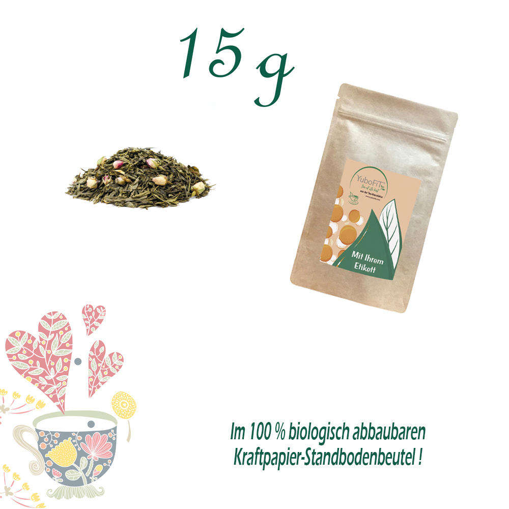 Grüner Tee (83%), Rosenknospen (14%), Aroma.