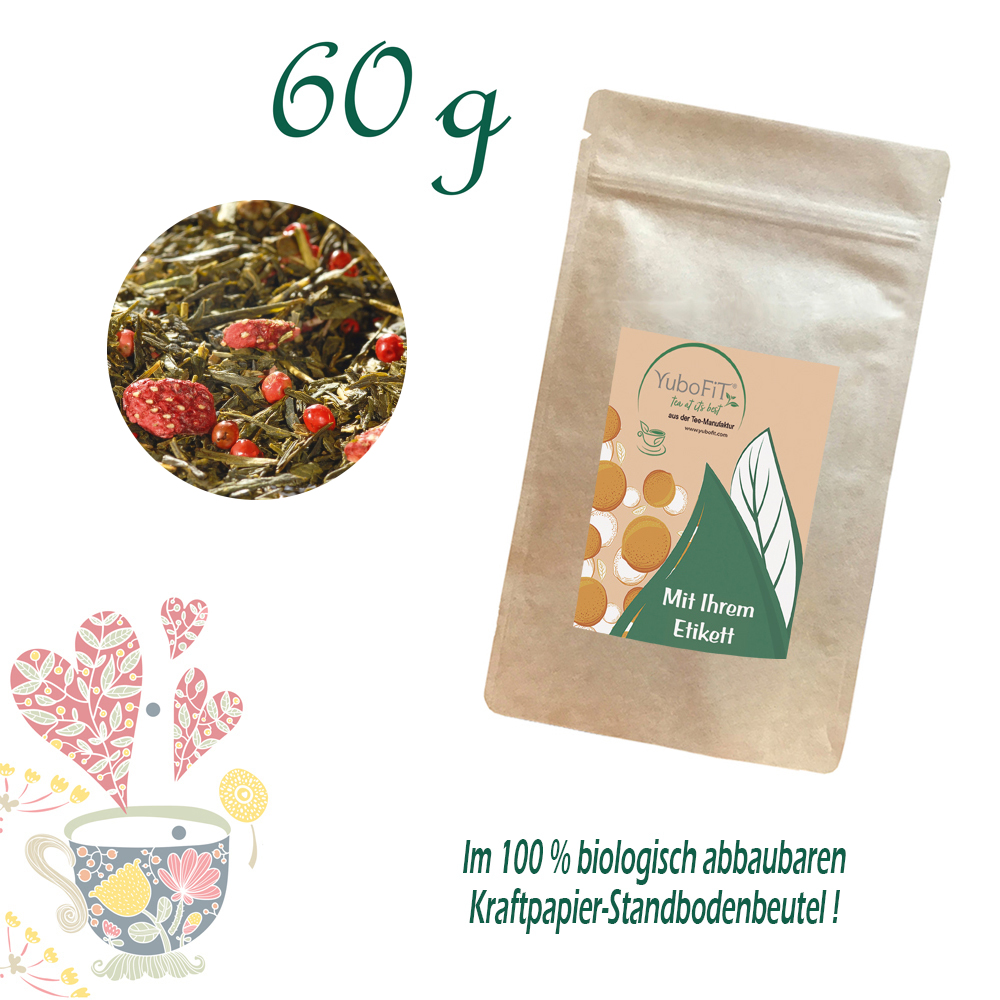 Grüner Tee (85%), Ginkgoblätter (5%), Rosa Pfeffer, Aroma, Erdbeerstücke (2%).