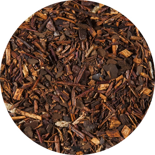 Rooibos, Mate geröstet (20 %), Schokoladenplättchen (Zucker, Kakaobestandteile, Emulgator: Sojalecithin) (6 %), Kakaobohnen, Aromen, KokosnussraspelKann Spuren von Milch enthalten.