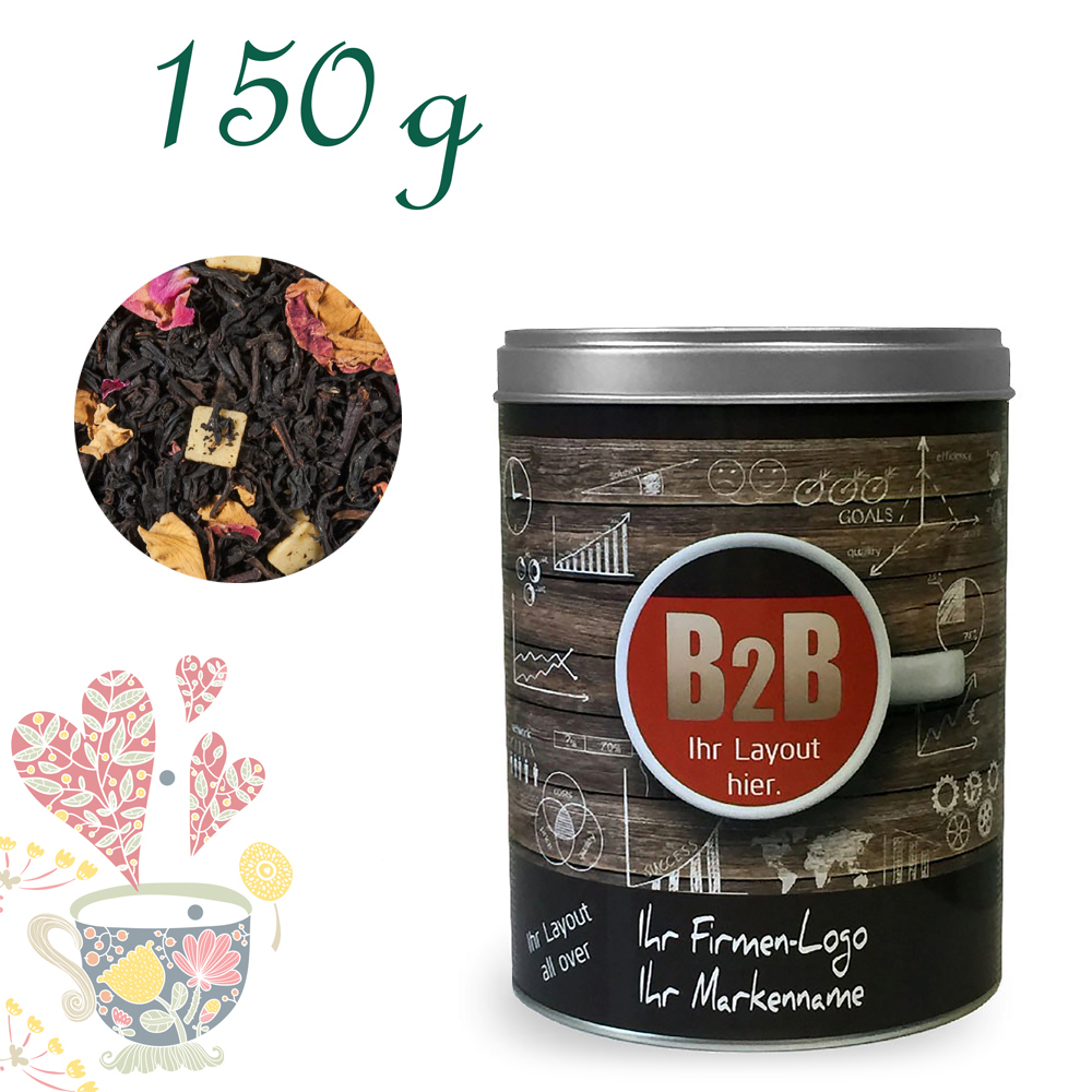 Schwarzer Tee (87 %), weiße Schokoladenplättchen (Zucker, Kakaobutter, Vollmilchpulver, Emulgator: Sonnenblumenlecithin) (8 %), Aromen, rote Rosenblütenblätter