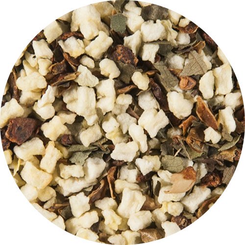 Apfelstücke (52 %), Apfeltrester (24 %), süße Brombeerblätter, Säuerungsmittel: Citronensäure, Aroma