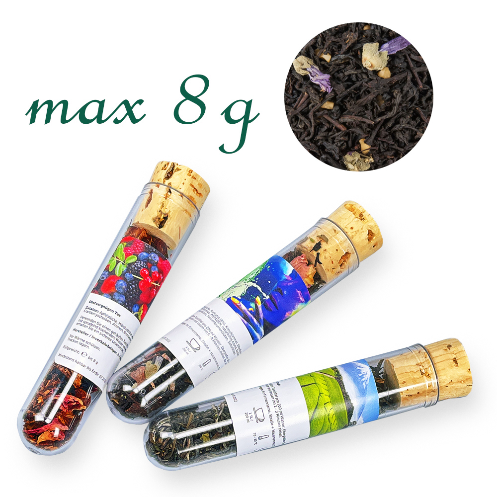 Schwarzer Tee (87 %), Mandelstücke, Aromen, Vanillestücke, Malvenblüten