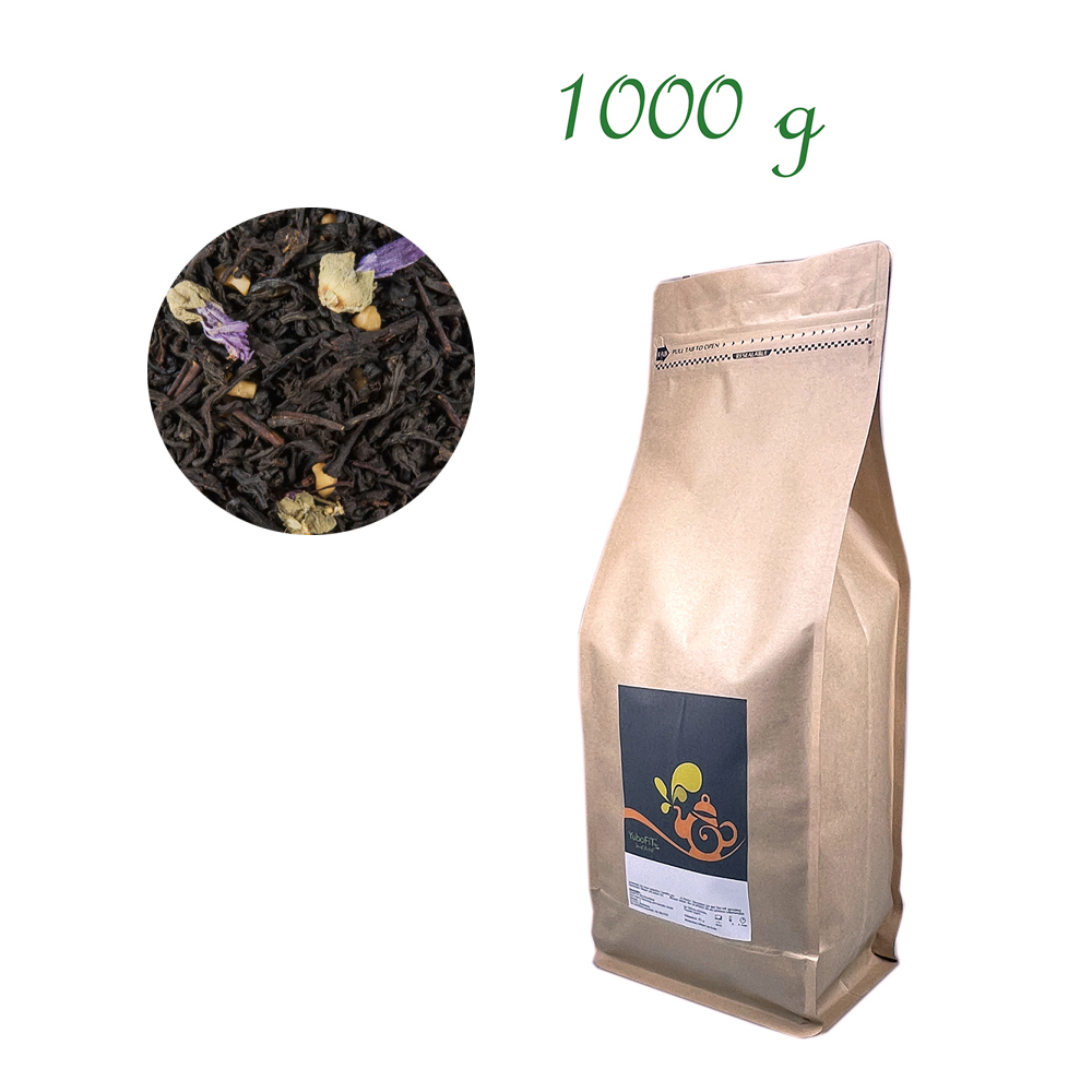 Schwarzer Tee (87 %), Mandelstücke, Aromen, Vanillestücke, Malvenblüten
