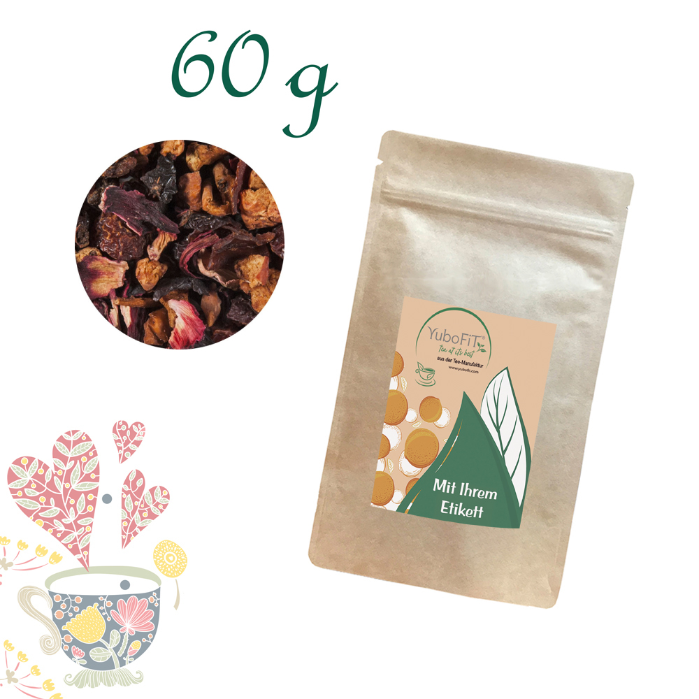 Apfelstücke, Hagebuttenschalen, Hibiskusblüten, Aromen, Vanillestücke (0,5 %)
