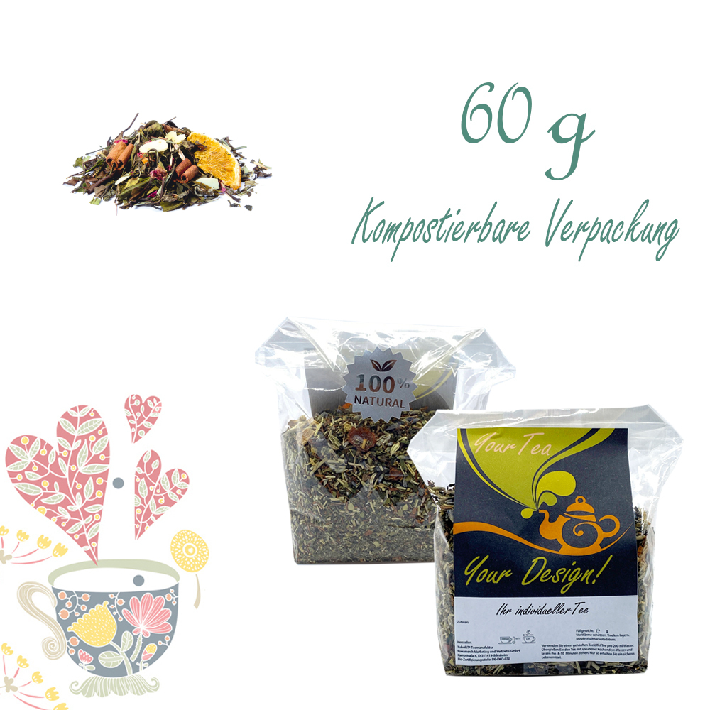 Kompostierbarer Zellglas-Beutel, Geprägtes Verschluss-Siegel aus Zuckerrohrpapier. Komplett abbaubar. Inhalt 60 g, Material: Zellglas