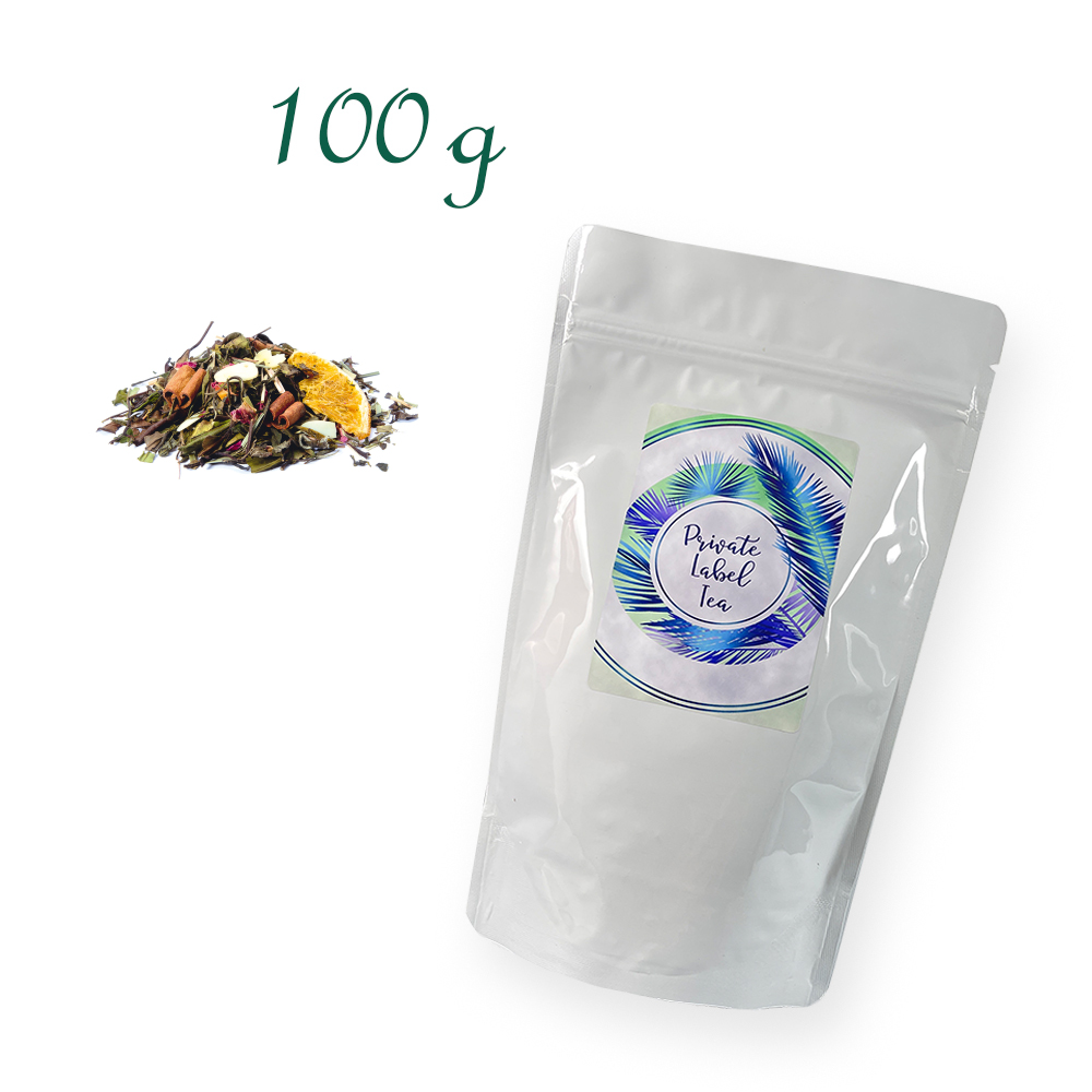 Grüner Tee (35%), Weißer Tee (24%), Zimtstangen, MANDELSTÜCKE (8%), Zitronengras, Orangenecken (4%), Aroma, Rosenblütenblätter.