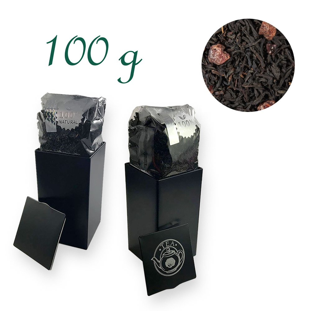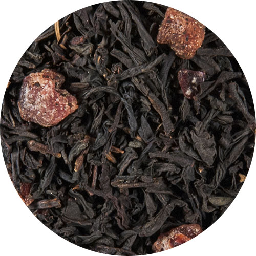 Schwarzer Tee, Cranberrystücke (Zucker, Cranberries, Reismehl, Sonnenblumenöl) (5 %), Aromen