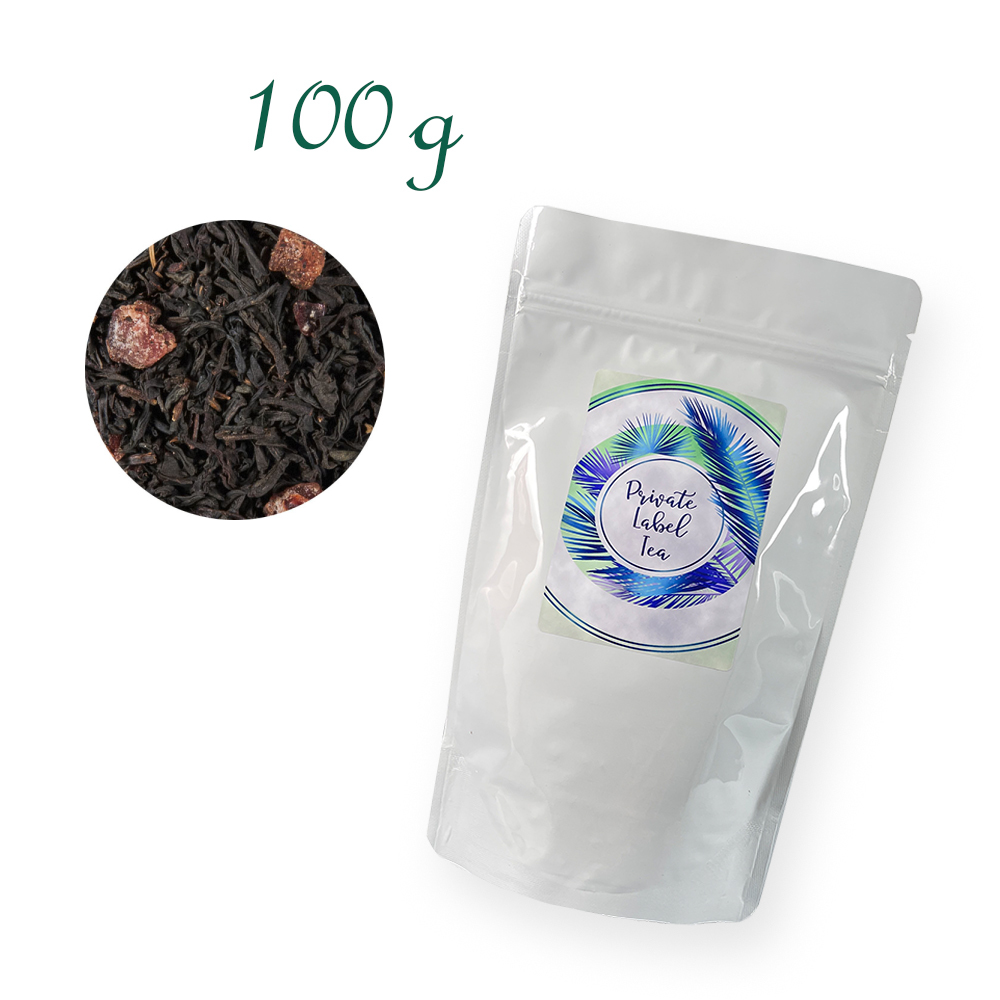 Schwarzer Tee, Cranberrystücke (Zucker, Cranberries, Reismehl, Sonnenblumenöl) (5 %), Aromen