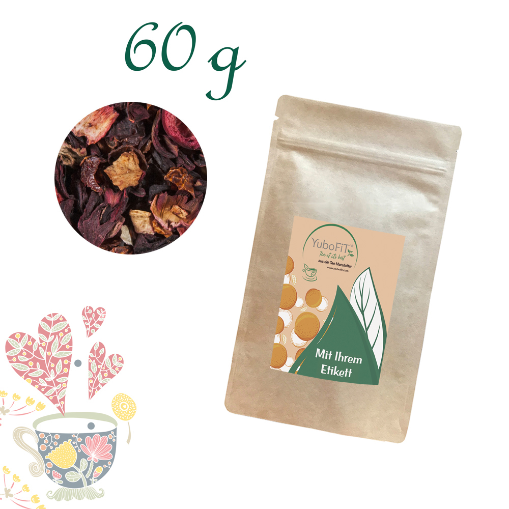 Hibiskusblüten, Hagebuttenschalen, Apfelstücke, Orangenschalen, Aromen, Cranberryscheiben, Sauerkirschen (1 %)