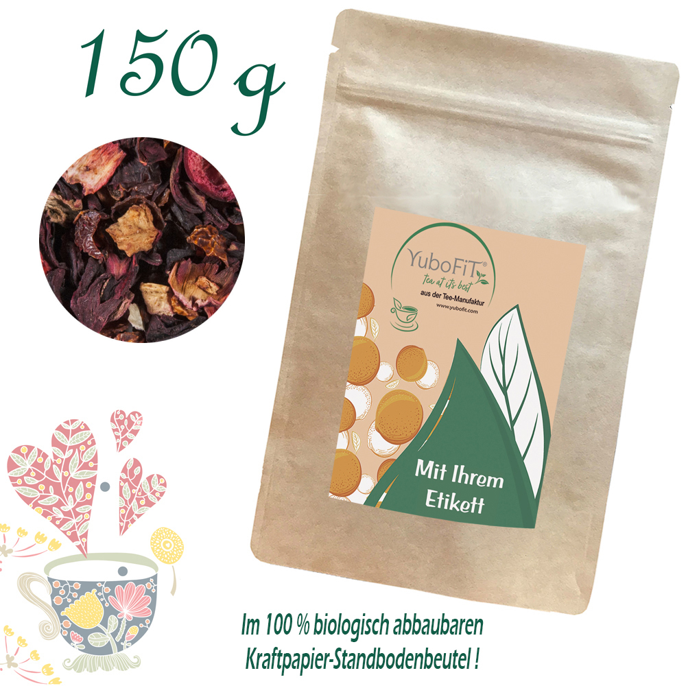 Hibiskusblüten, Hagebuttenschalen, Apfelstücke, Orangenschalen, Aromen, Cranberryscheiben, Sauerkirschen (1 %)