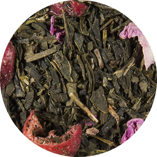 Grüner Tee China Sencha, Aromen, Cranberryscheiben, Rosenblütenblätter