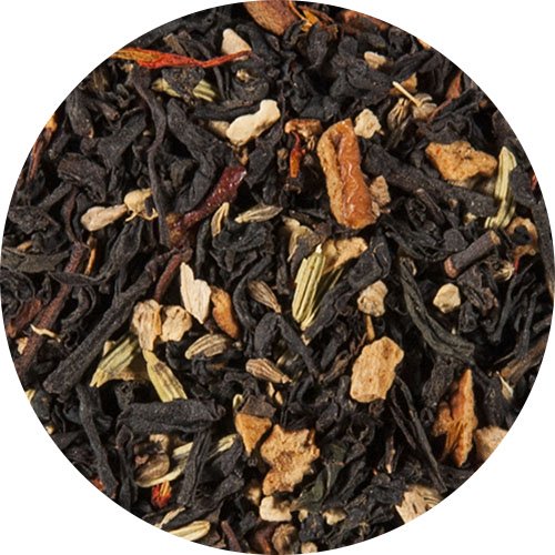 Zutaten: Schwarzer Tee (60,5 %), Ingwer, Apfelstücke, Fenchel, Anis, Zimt, Aromen, Färberdistelblüten