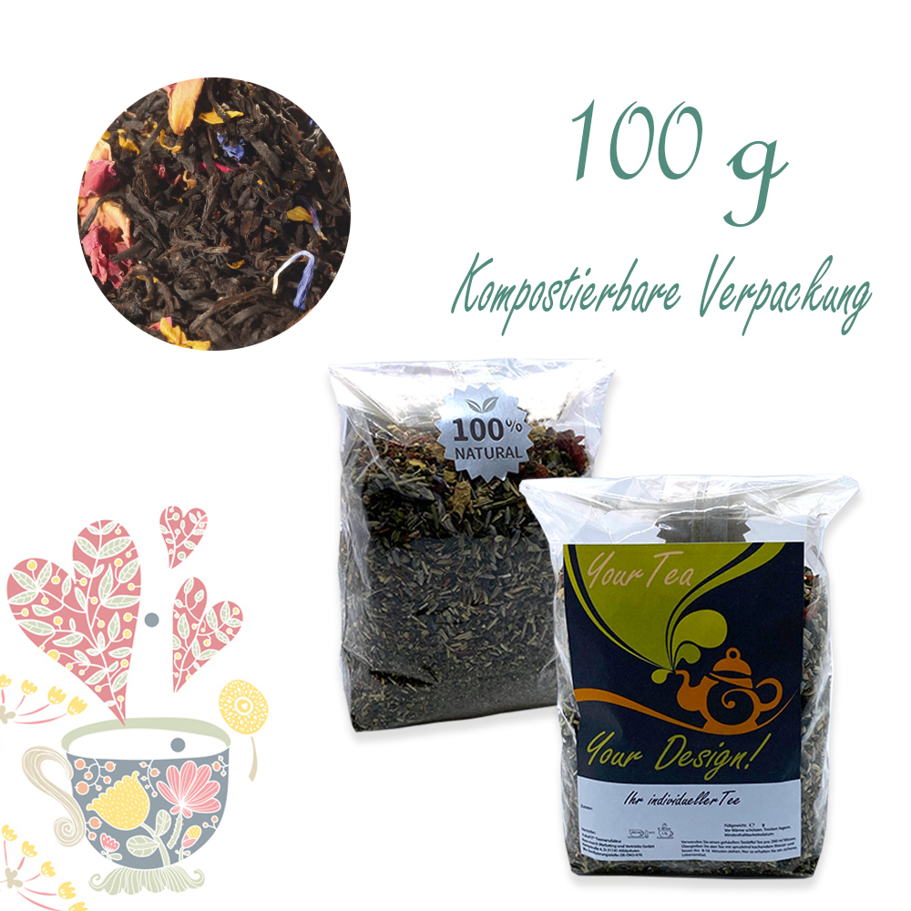 Schwarzer Tee (92%), Sonnenblumenblüten, Rosenblütenblätter, Aroma, Kornblumenblüten, natürliches Bergamotte-Aroma mit anderen natürlichen Aromen.