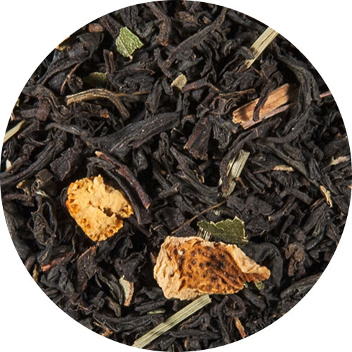 Schwarzer Tee (88 %), Zitronenschalen, Zitronengras, Zitronenmyrte, Aromen