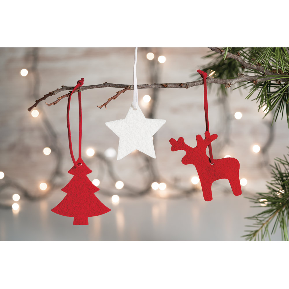 Set mit 3 Weihnachtsdekorationen aus Filz. 3 verschiedene Motive. 65 x 70 x 3 mm