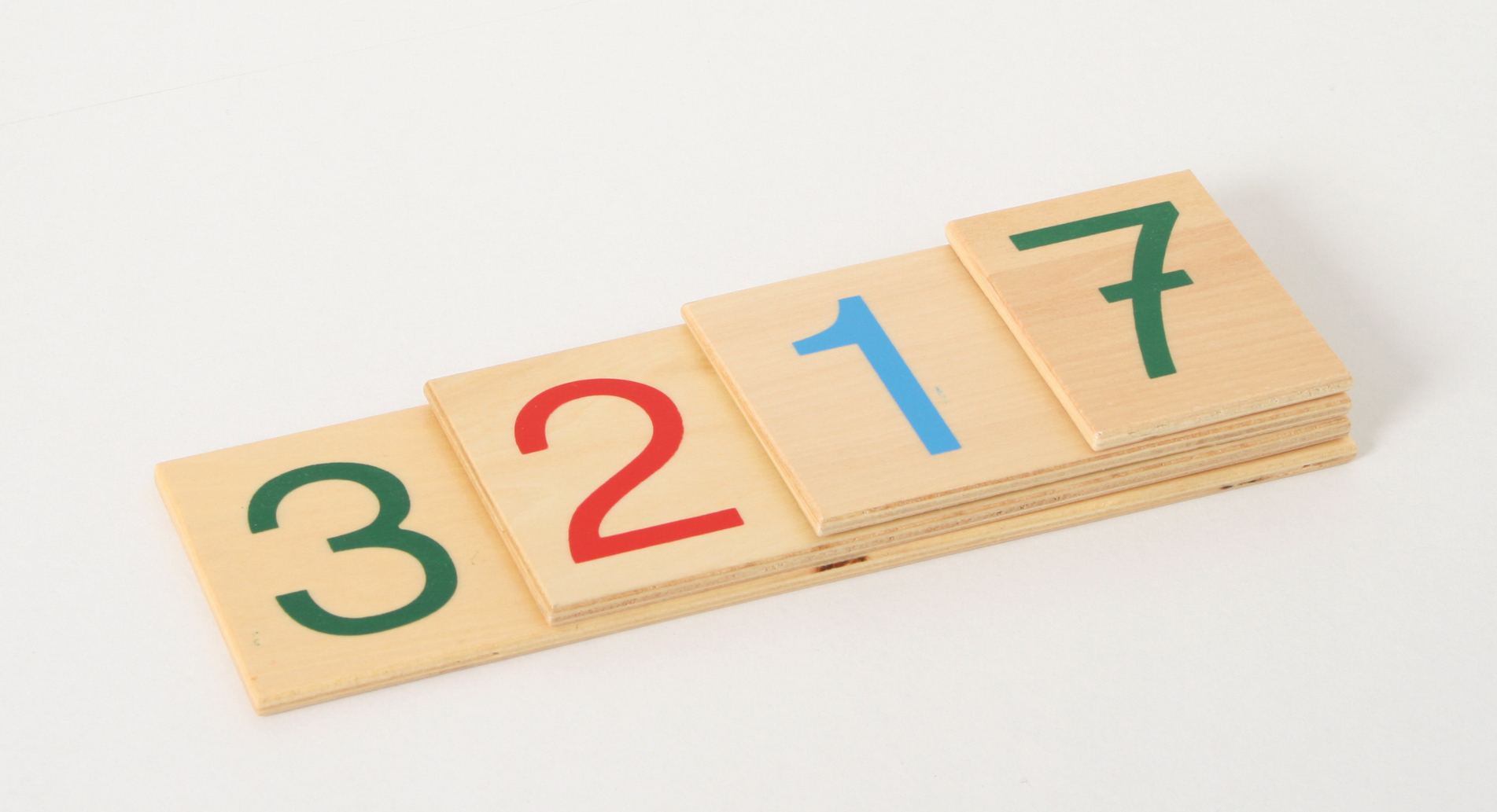 Große Zahlenkarten aus Holz im Holzkasten. Der dargestellte Zahlenbereich reicht von 1 - 9000. Größe des Kastens: 30 x 12,5 x 3,8 cm. Größe einer Tausender-Karte: 22 x 7 x 0,5 cm. Mit diesem Material lernen Kinder das Dezimalsystem kennen und üben die Addition und Subtraktion. Darüber hinaus werden die Zahlenkarten bevorzugt als Hilfsmittel bei der Arbeit mit dem Perlenmaterial (siehe Art.-Nr. 109545, 109553, 109554!) genutzt, um Aufgaben und Arbeiten aufzubereiten. Die Tafeln verdeutlichen die Zahlenschritte Einer, Zehner, Hunderter und Tausender. Die Karten aus Holz zeigen die Zahlen von 1 bis 9000. Die Hierarchie der Zahlen wird durch die unterschiedliche Länge der Karten und die unterschiedliche Farbe der aufgedruckten Zahlen dargestellt. Die Einer sind grün, die Zehner sind blau, die Hunderter rot und die Tausender als Einheit der folgenden Kategorie wieder grün. Selbstkontrolle durch Perlenmaterial oder vorgegebene Aufgaben. Ab 5 Jahren.