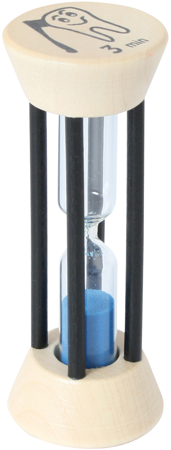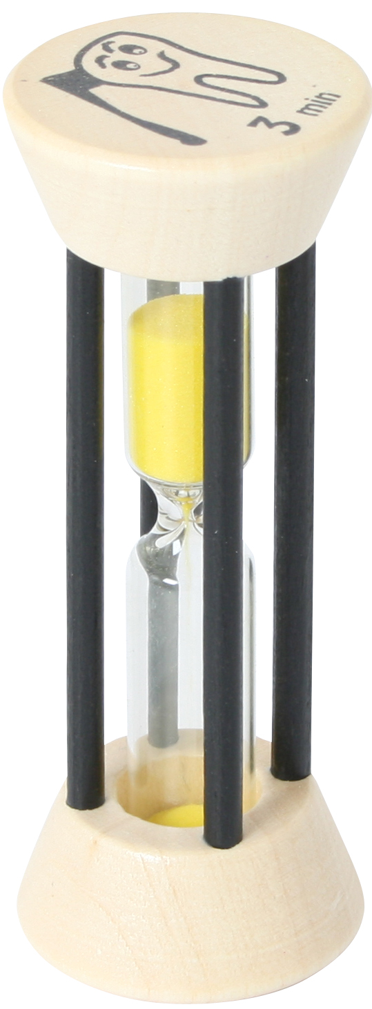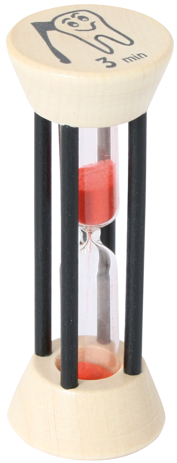 Das Minutenglas tut kund, wie lange man morgens und abends seine Zähne putzen muss, damit sie nicht frühzeitig in der Milchzahndose landen. Mit dem Zeitmesser lernen Kinder spielend, sich richtig die Zähne zu putzen.
