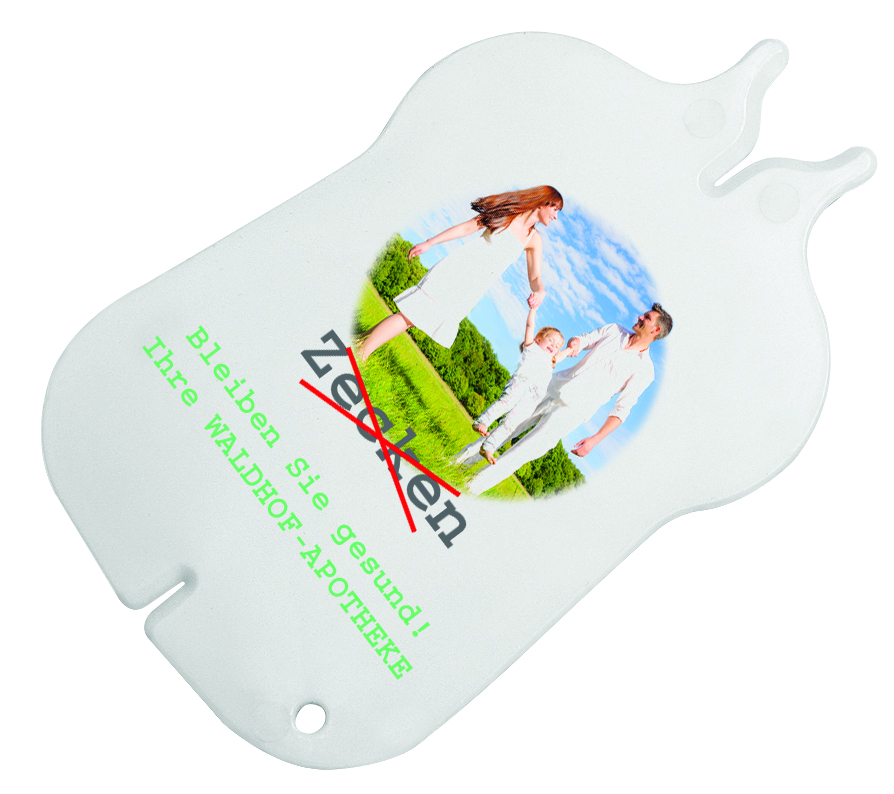 Zeckenentferner "Duo" flaches Kreditkartenformat, mit zwei Entnahmen für kleine und große ZeckenBesonders geeignet für Mailings.
