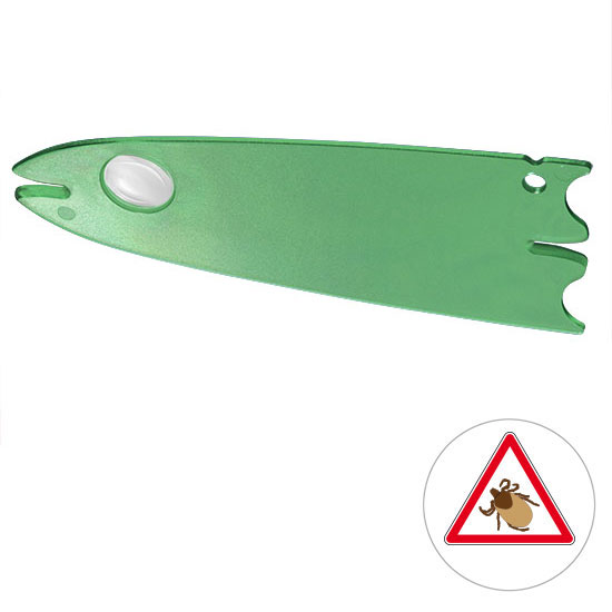 Zeckenentferner mit Lupe "Duo" praktisches, flaches Format, mit zwei Kerben. Besonders geeignet für Mailings