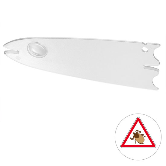 Zeckenentferner mit Lupe "Duo" praktisches, flaches Format, mit zwei Kerben. Besonders geeignet für Mailings