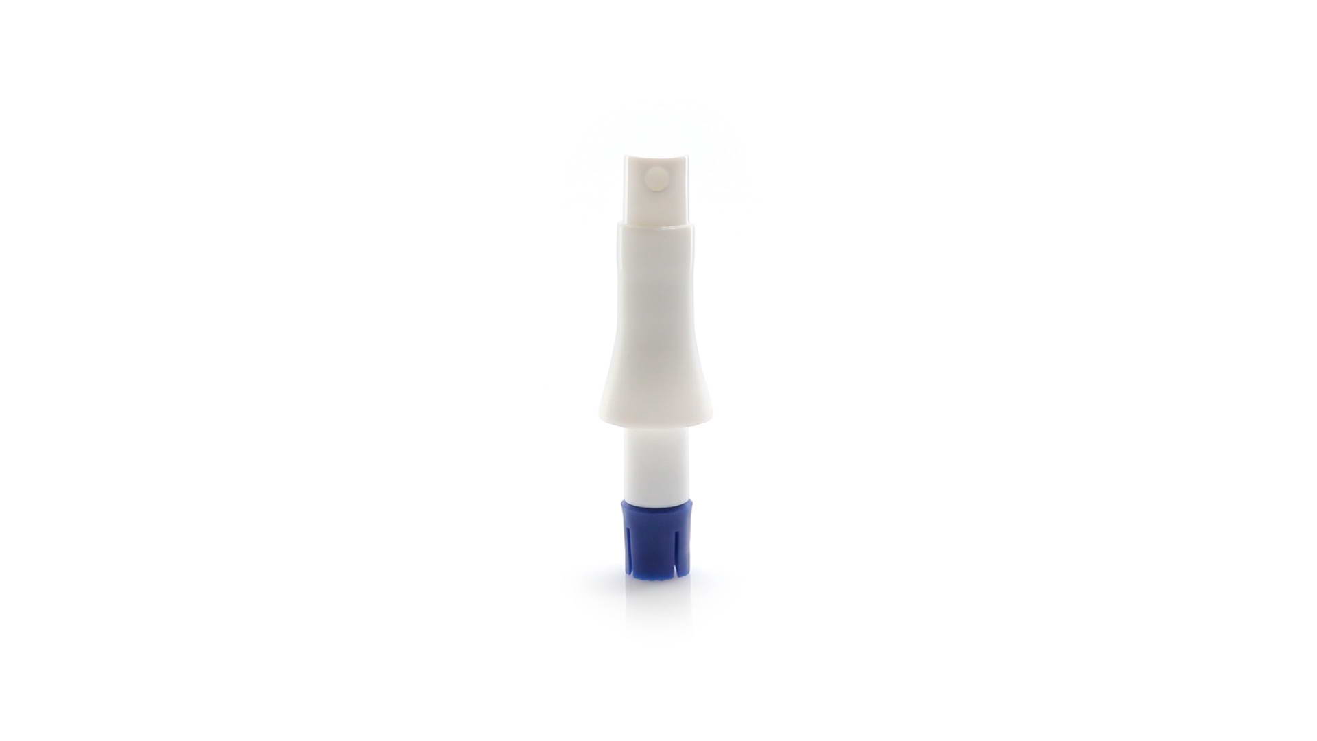 Spray-Aufsatz für Zitrusfrüchte. Durch einfaches Einstechen des Aufsatzes in die Zitrusfrucht und Drücken des Knopfes, wird der Saft der Frucht entzogen.