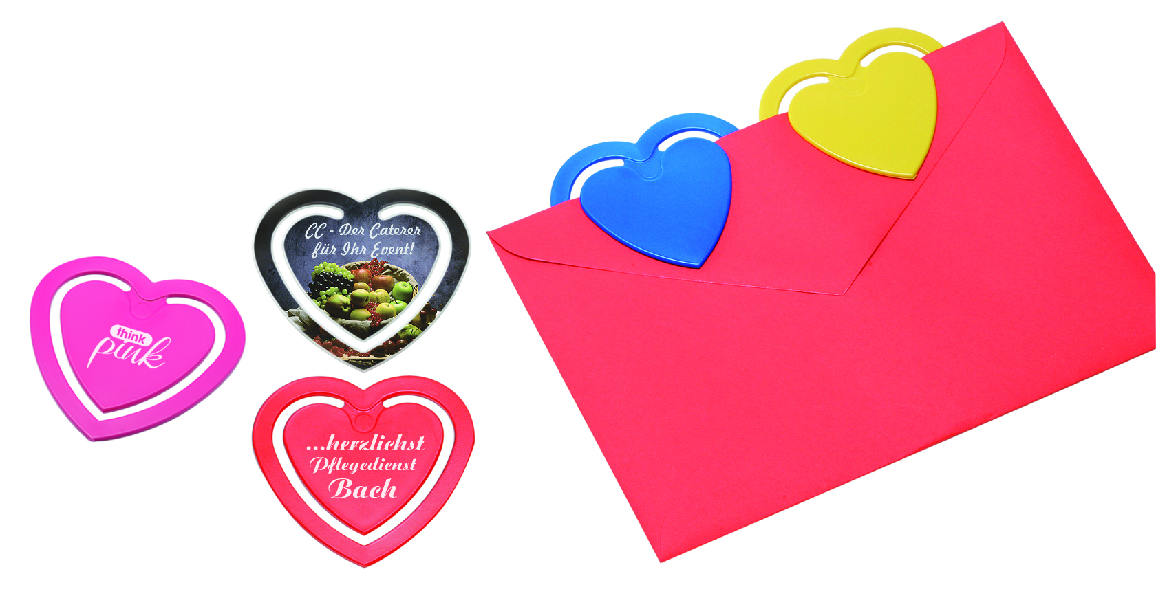 Zettelklammer "Herz" preiswerter, vielseitig einsetzbarer Streuartikel. Besonders geeignet für Mailings