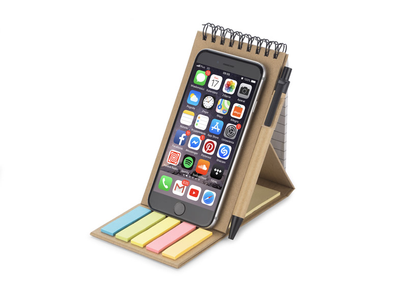 Das Set ZENTO ist ein nützliches und praktisches Gadget. Durch die geringe Größe lässt sich das Produkt leicht verstauen und verpacken, beispielsweise in einer Tasche, und kann auch als tragbarer Telefonständer verwendet werden. Das Set beinhaltet: ein Spiralnotizbuch – 70 linierte Blätter, 25 Stück gelbe Haftnotizen, bunte Haftnotizen – 25 Stück / Farbe und einen Stift mit schwarzer Mine.